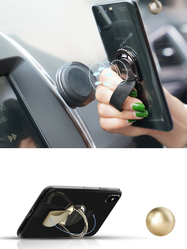 Kingxbar Princess Series Ring, Swarovski Kristalle, Halterung für Smartphones schwarz Gold